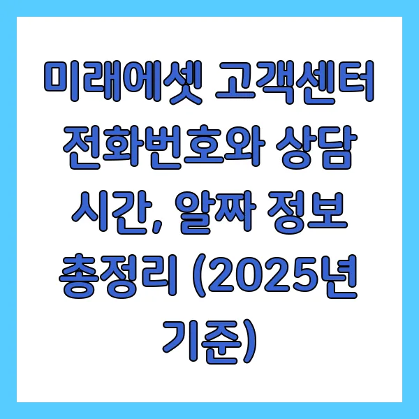 미래에셋 고객센터 전화번호와 상담 시간, 알짜 정보 총정리 (2025년 기준)